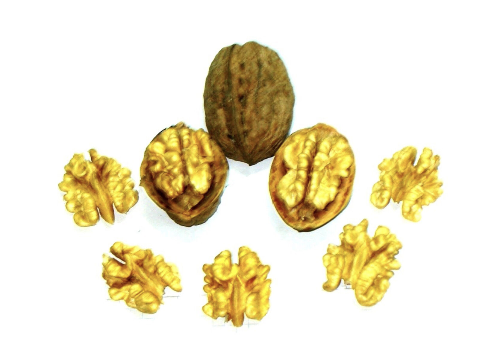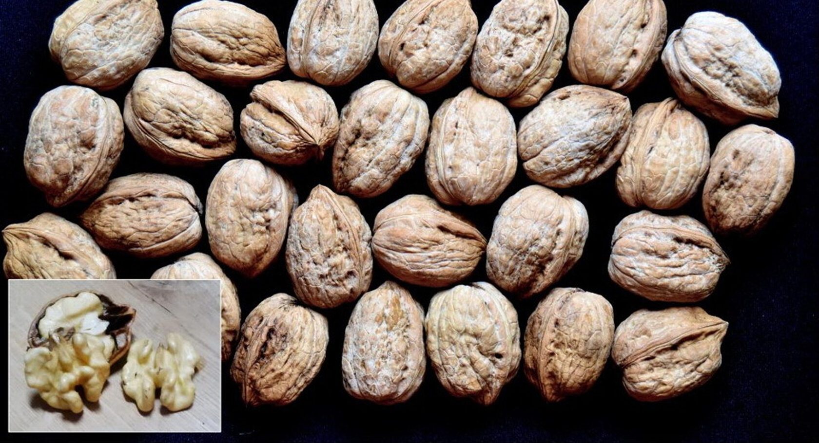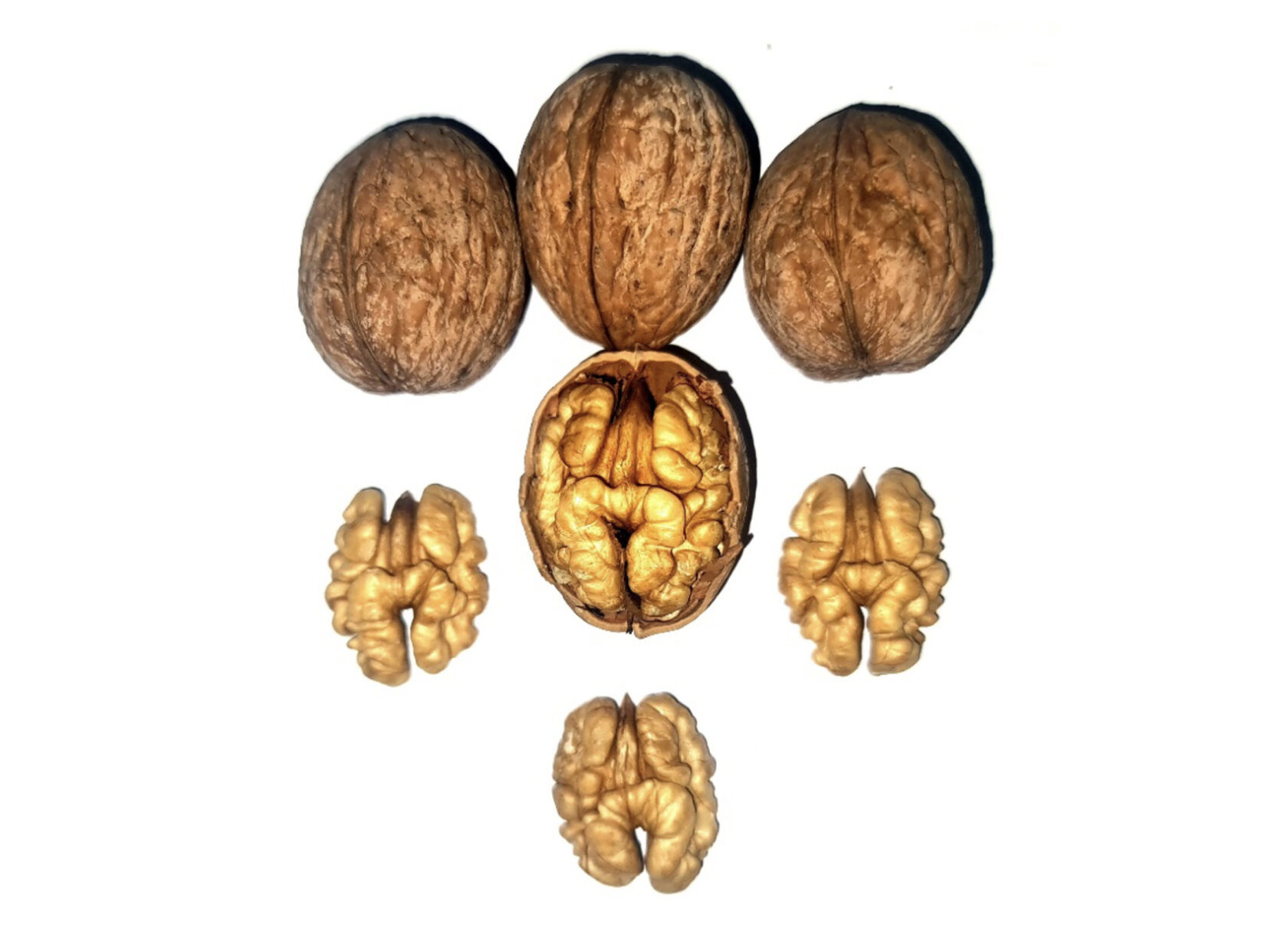 Variety features: Medium-sized tree: reaches a height of about 5 metres, making it easy to harvest. High yield: up to 70 kg of nuts can be harvested from one tree. Rapid bearing: first fruiting starts in the 4th year after planting. Fruit: round shape, weighing 13-16 grams, with a thin shell, from which the kernel is easily extracted. Kernel filling: is 50%. Kernel: light amber in colour, without the bitterness characteristic of many other walnut varieties. Fruiting type: lateral