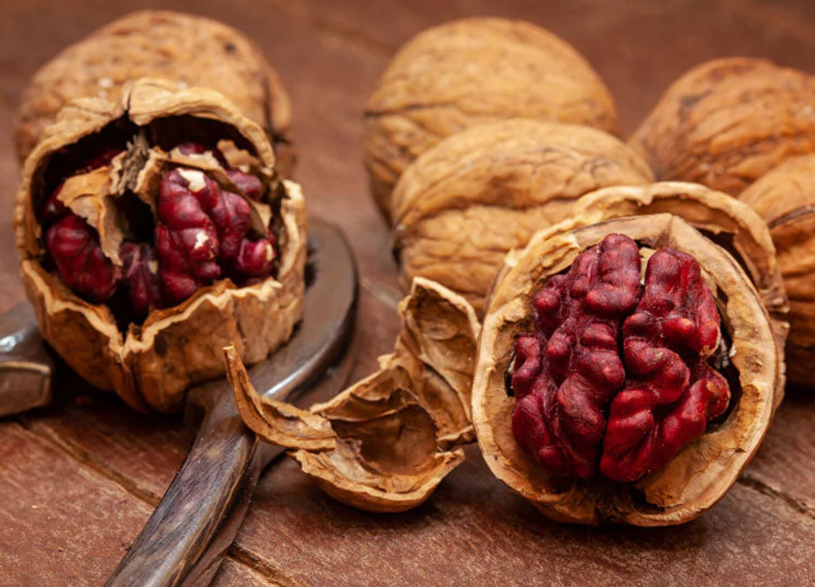 Their feature is hidden behind the shell of the nuts. The nuances of the delicate core skin can range from pink to light red, and strong, dark red is also possible. Even the kernels of these red walnut varieties are occasionally noticeable due to their unusual coloring. However, it is not the distinctive appearance of the red walnuts alone that makes these varieties so popular in the catering and confectionery industries and among lovers. The taste is in no way inferior to the exterior. Red walnuts are mild, have a delicate aroma and are extremely digestible.