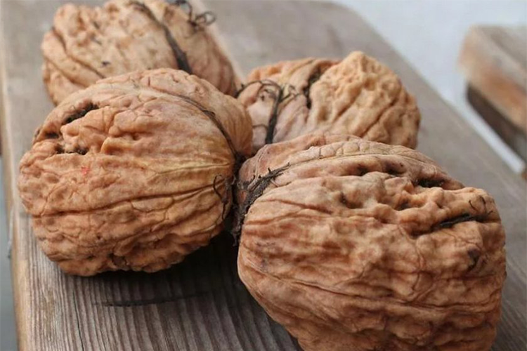 A medium-sized tree with a compact form. It rarely grows more than 10 meters tall. The canopy spreads 5-7 meters wide - an ideal tree for small gardens. It blossoms from late April to early May with good tolerance to late frost. The fruits are large, weighing 30-40 grams, about 8 cm long and about 6 cm wide. The shell is very hard, but the nuts are easy to crack. This self-pollinating tree, so no other trees are needed nearby for a harvest. It has good resistance to diseases and pests.